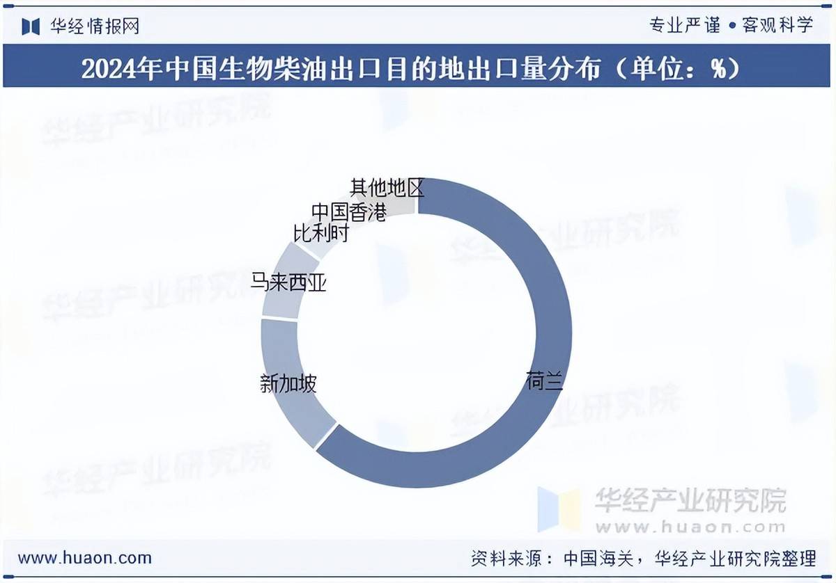 从我国生物柴油出口目标地出口量来看,2024年我国生物柴油共出口至21个国度和地域,出口量排前五的别离是荷兰、新加坡、马来西亚、比利时取中国,其他地域出口量占比6。81%。
