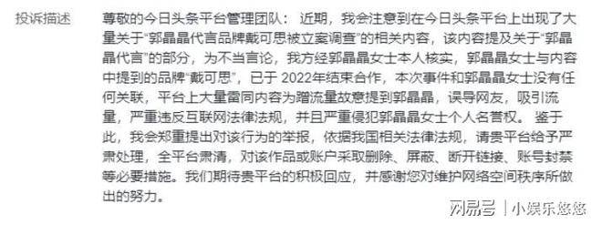 1月22日,戴可思发布了正式的道歉声明。声明中注释称,所谓食物级的宣传词,源自公司推广人员对经口毒性测试理解上的错误,而且该内容未经公司审核。公司也明白暗示,这一宣传语仅正在单一平台的搜刮页面呈现,已及时撤回。然而,事务并未就此平息。当天,无锡市新吴区市场监管局已对该品牌立案查询拜访。动静一经发布,立即惹起了网友们的强烈热闹会商。良多人暗示,本人采办戴可思的产物,恰是看中了郭晶晶的代言,由于做为三个孩子的母亲,郭晶晶代言的产物让人更有信赖感。可是,大师心中不免失望。但令人失望的并不是郭晶晶,而是品牌方的疏忽和违规行为。跟着愈发激烈,某些营销号起头借机炒做,居心将矛头指向郭晶晶,试图她,霎时,收集上着各类负面言论。不外,熟悉郭晶晶的人都晓得,她从不会等闲缄默。